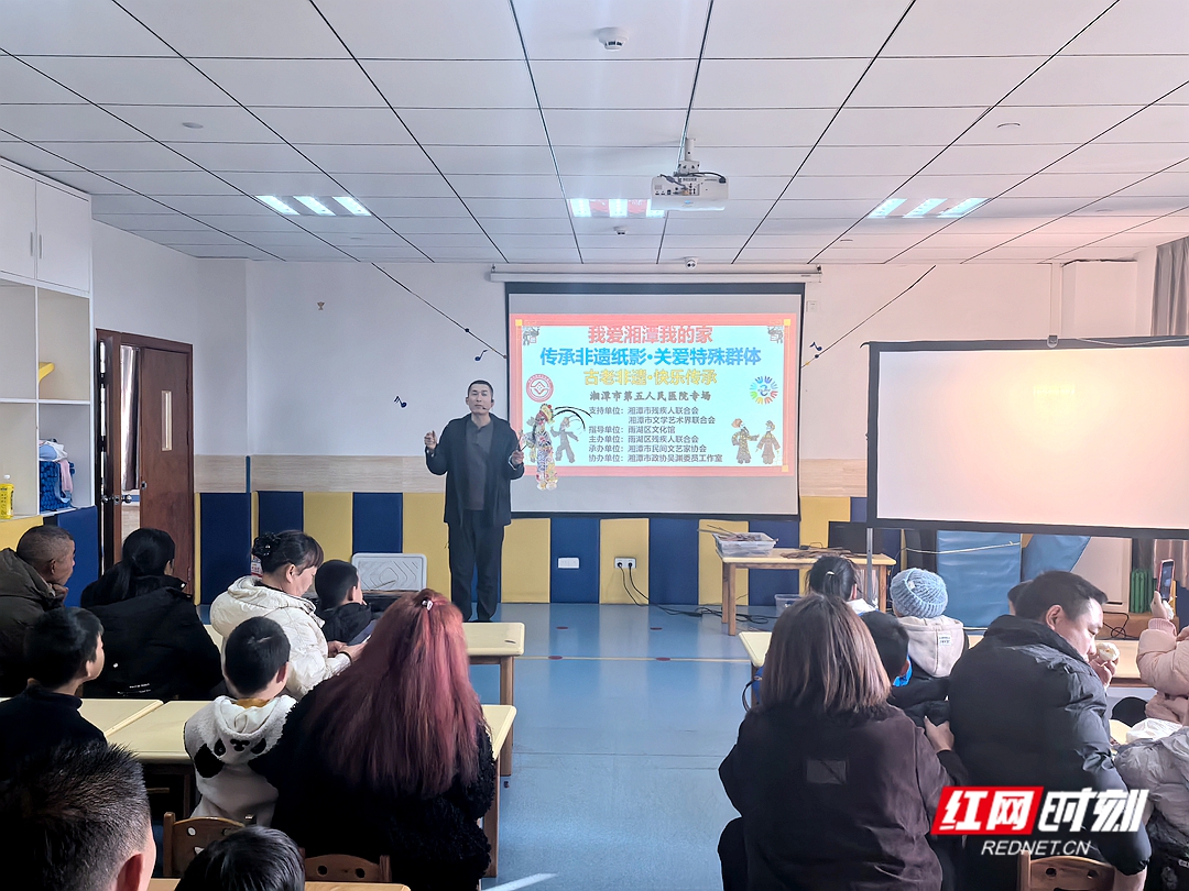 12月28日上午,湘潭市民间文艺家协会组织文艺志愿者走进市五医院康复中心,开展了一场以“非遗纸影·温暖童心”为主题的文化体验活动,为心智障碍儿童带去了一堂生动有趣的非遗纸影课程。