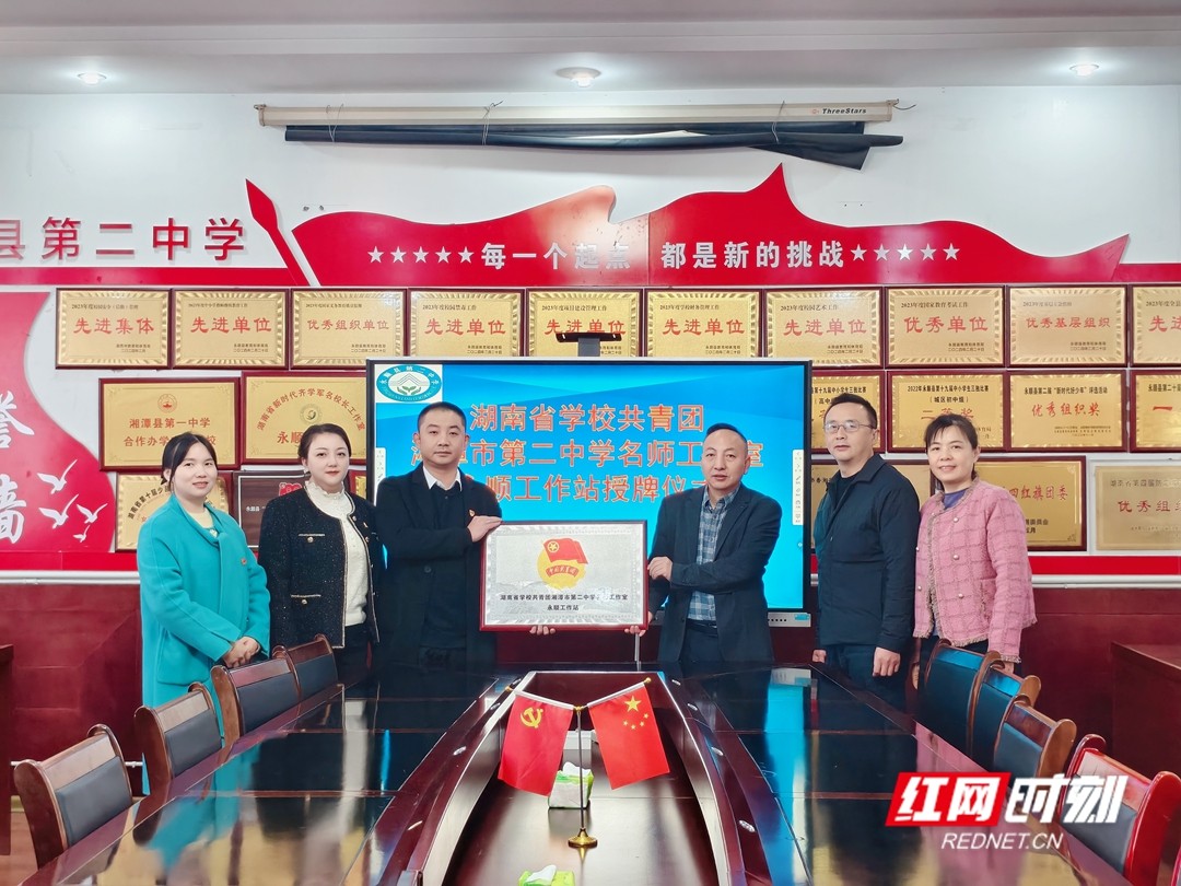 活动中,为永顺县二中授予“湖南省学校共青团湘潭市第二中学名师工作室永顺工作站”牌匾,为今后在教育教学、思政建设、团队工作等领域的长期深度合作奠定基础。