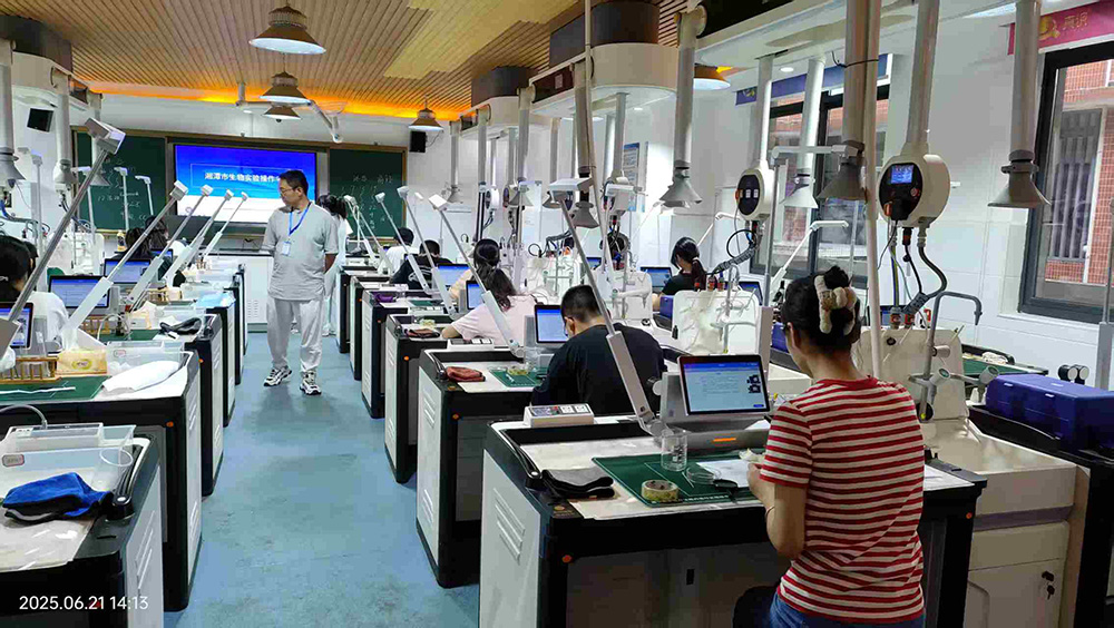 “学校之前的实验室已经比较老旧了,现在设施设备全部换新,还有理化生AI考室,实验桌上安装AI考试终端,能够多角度用视频记录实验全过程并进行评分,对学生学习和教师教学都很有帮助。”湘潭市岳塘区湘钢二中刘老师对近期学校实验室的变化满是欢喜。