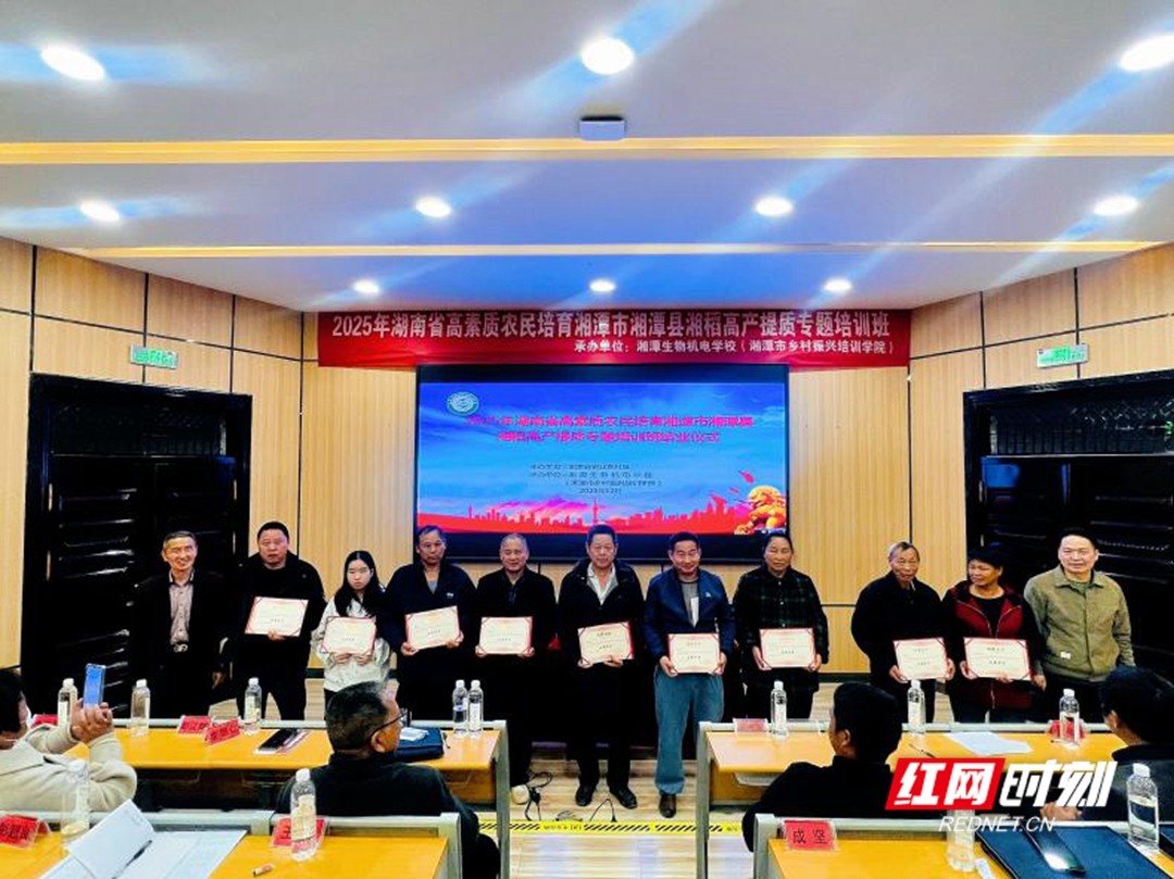 近日,由湘潭县农业农村局主办,湘潭市乡村振兴培训学院(湘潭生物机电学校)承办的 2025年湘潭县粮油产能提升高素质农民培训班落下帷幕。此次培训汇聚全县50名粮油经营主体、种粮大户、农民合作社骨干等学员,为粮油产业高质量发展注入强劲动能。