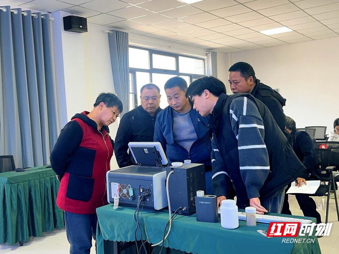 为让培训“不走过场、直击痛点”,此次培训突破传统“重理论、轻实践”模式,构建“实战化、场景化”育才范式,培育模式采用“线下理论精讲+田间实景实训+线上延伸学习”融合形态,线下夯实理论基础并赴省级示范基地实操,线上依托“湘农科教云 APP”推送技术课程,实现 “线下学技能、线上补知识”无缝衔接,学员实地观摩优质稻育种、农机农艺协同模式,在校企合作实验室完成“水质采样-数据解读-方案制定”全流程操作,专家实时解疑确保技术“学得会、用得上”。