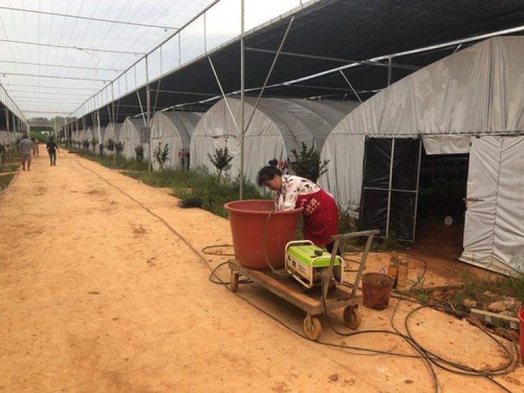 6月5日,湖南省韶山市银田村的扶贫产业基地里,贫困户在劳作。 新华社记者 陈宇箫摄